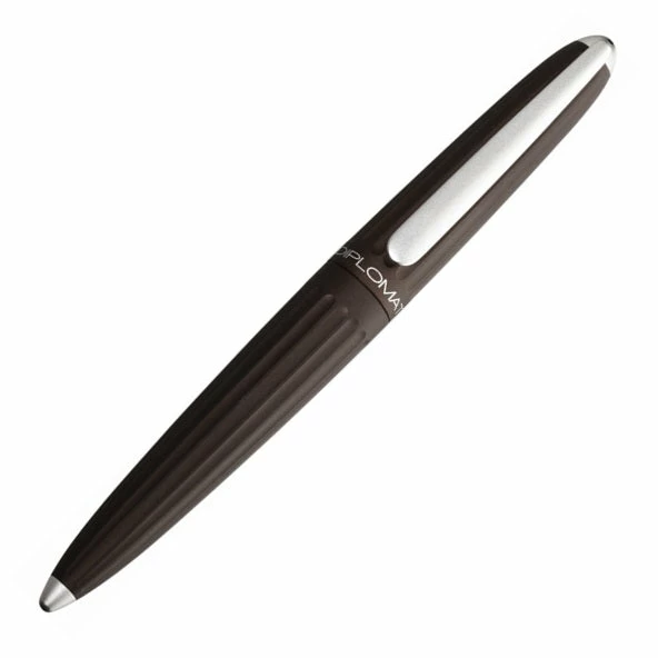 In 1900 the Zeppelin airship began its first test flight under the aeronautical leadership of Earl von Zeppelin. Based on this event and the design of the airship Diplomat introduces the Aero pen to the market. Aero is characterized by groove-like depressions on the barrel and cap which lends the pen next to its classic form a modern spirit. Aero is made of anodized aluminum and is especially designed ergonomically. The clip harmonizes well with the shape of the pen.